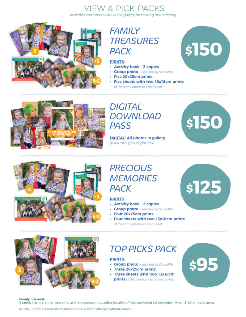 No problem! Individual products are also available for families who don’t need a full pack. From single prints to digital downloads and fun add-ons, it’s easy to pick and choose favourites directly from the gallery once the photos are ready to view.